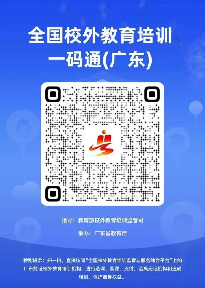 全國(guó)校外教育培訓(xùn)機(jī)構(gòu)“一碼通”(廣東)是依托全國(guó)校外教育培訓(xùn)監(jiān)管與服務(wù)綜合平臺(tái)(簡(jiǎn)稱“全國(guó)平臺(tái)”)建設(shè)的官方二維碼,家長(zhǎng)學(xué)生可通過(guò)微信、支付寶“掃一掃”功能,一鍵直達(dá)全國(guó)平臺(tái)家長(zhǎng)端,快速查詢?nèi)珖?guó)平臺(tái)持證機(jī)構(gòu)的各類信息,“一站式”便捷開(kāi)展在線選課、支付、合同簽訂、退費(fèi)等校外教育培訓(xùn)服務(wù)。