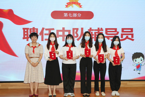 少工委主任、校長李晶宣布各中隊輔導員名單并為中隊輔導員頒發(fā)聘書。