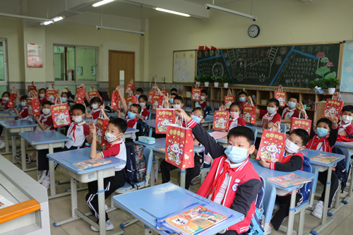 課間,老師們向?qū)W生派送返校禮包,歡迎孩子們重返校園,開心地與同學(xué)們面對(duì)面暢聊,交流網(wǎng)課期間的學(xué)習(xí)情況,傾訴彼此的思念之情和返校后的激動(dòng)心情。