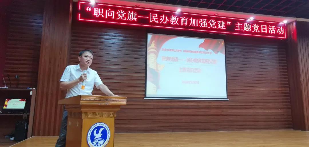 在本次的主題黨日活動(dòng)中,深圳中華職教社秘書長(zhǎng)、黨支部書記黃致誠(chéng)以“如何加強(qiáng)民辦學(xué)校黨建工作”為主題進(jìn)行發(fā)言。黃致誠(chéng)書記結(jié)合民辦教育特點(diǎn),和參會(huì)的全體黨員一同學(xué)習(xí)了民辦教育加強(qiáng)黨建的重要性,加強(qiáng)思想政治教育和德育工作,緊密結(jié)合業(yè)務(wù)、日常管理、文化建設(shè),創(chuàng)新活動(dòng)方式將黨建工作與業(yè)務(wù)融合互促。