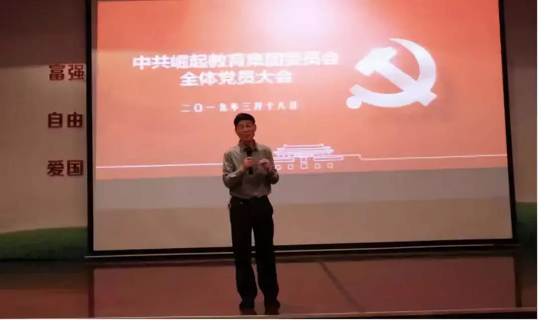 2019年3月18日晚,中共深圳市崛起教育集團委員會全體黨員大會在翻身實驗學(xué)校西校區(qū)召開。翻身實驗學(xué)校西校區(qū)全體行政干部、黨員、預(yù)備黨員和入黨積極分子參加了本次會議。在李晶校長的主持下,曾立奇書記給全體黨員上了一堂以“最后一公里,黨員要發(fā)揮先鋒模范作用”為主題的黨課。