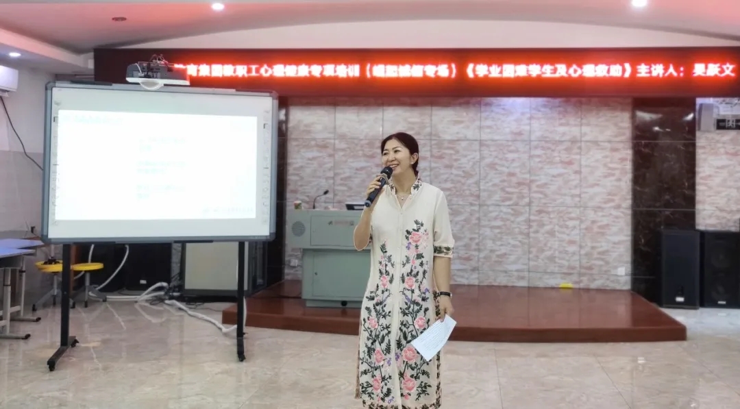 6位專家均來自“深圳信息職業(yè)技術(shù)學(xué)院”。吳躍文校長高度重視本次培訓(xùn),為崛起精心配置課程,從學(xué)校、教師、學(xué)生三個方面,對于學(xué)困生心理救助、危機(jī)識別、心理咨詢輔導(dǎo)以及壓力管理等問題逐一展開講解。